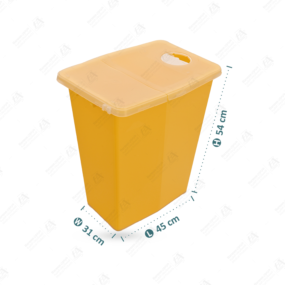 حاوية نفايات طبية خطرة صفراء مقاس 45 لتر غطاء قابل للطي