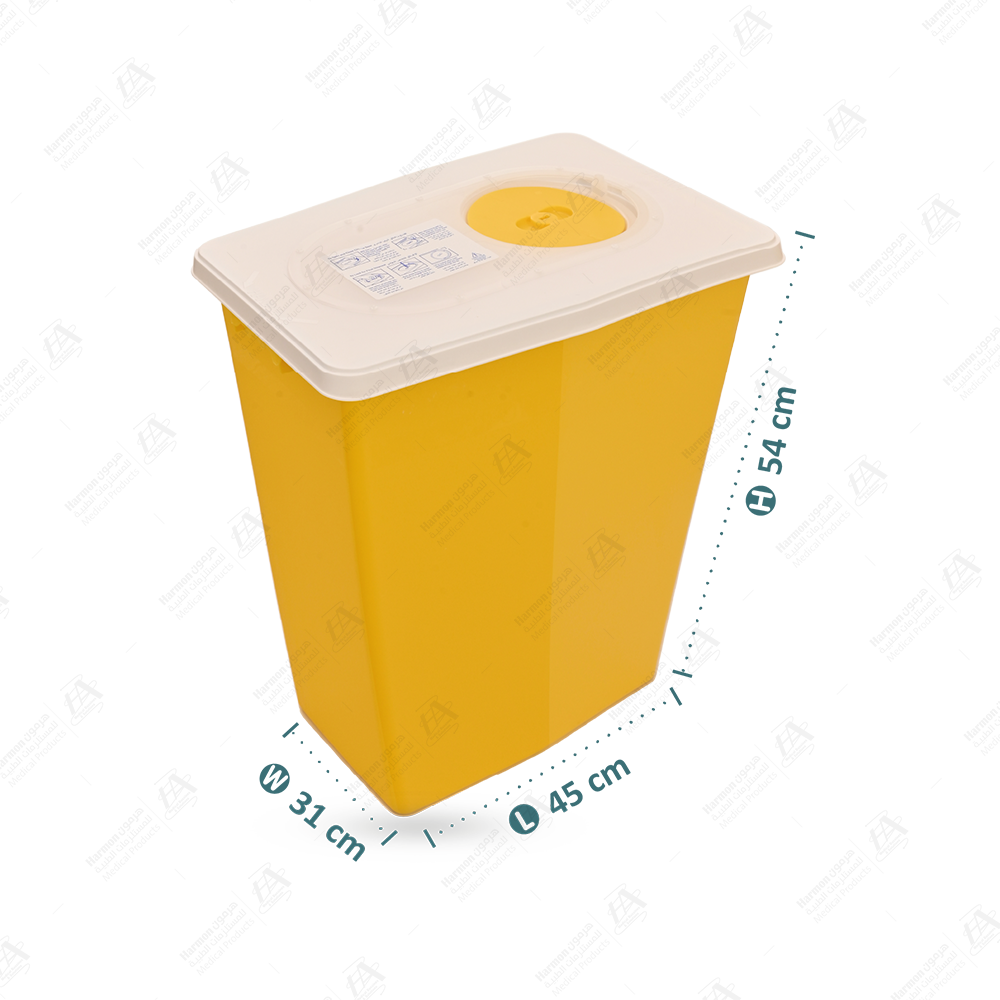 حاوية نفايات طبية خطرة صفراء مقاس 45 لتر غطاء سحاب