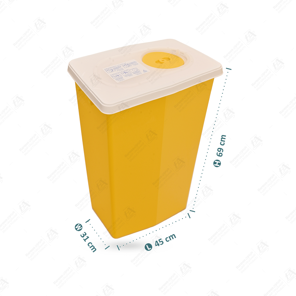 حاوية نفايات طبية خطرة صفراء مقاس 67 لتر غطاء سحاب